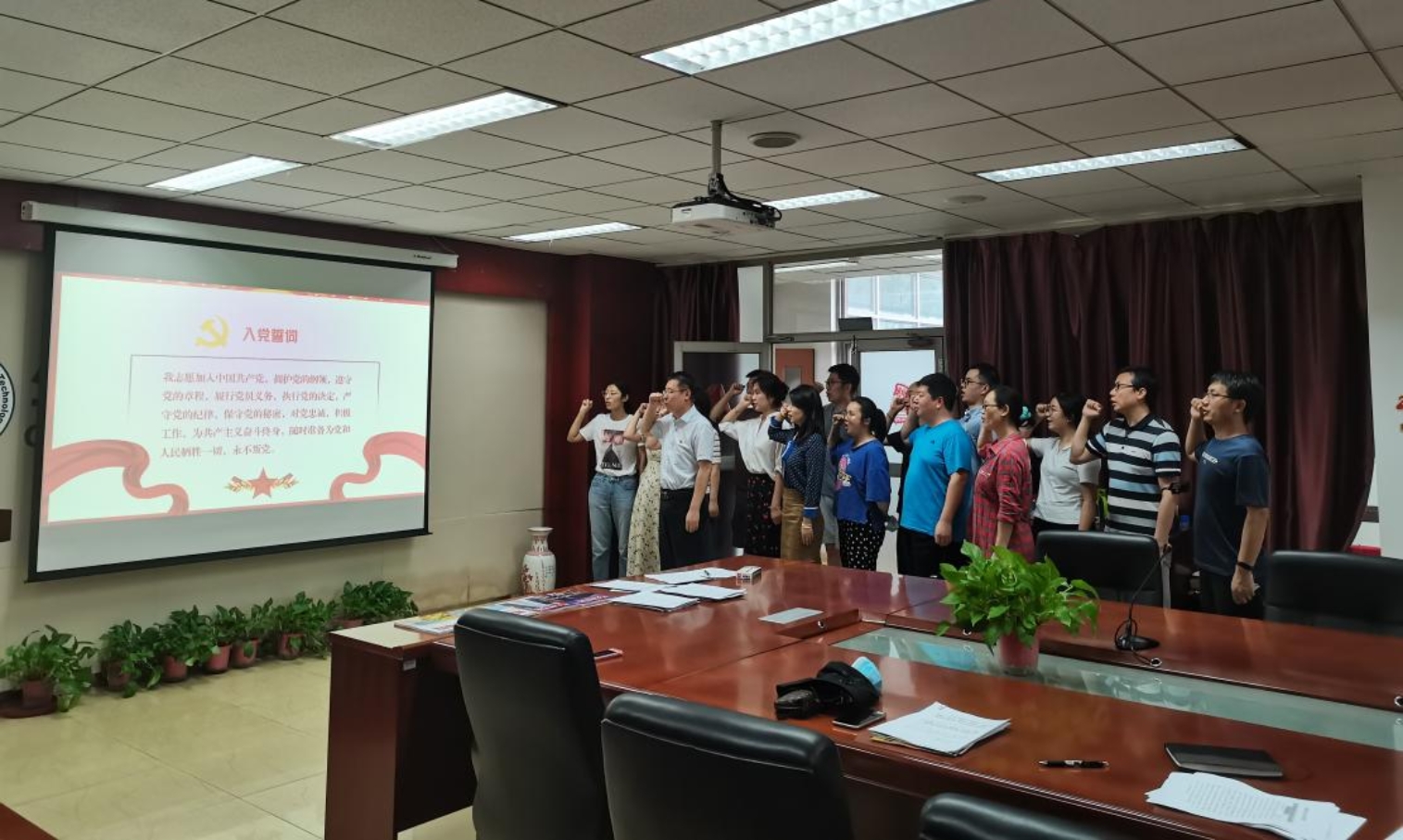 “我志愿加入中国共产党,拥护党的纲领,遵守党的章程……”,学院党委书记黄学锋同志带领到场党员,右手握拳,面向鲜红的党旗,重温入党誓词,回顾入党初心,现场气氛庄严热烈。