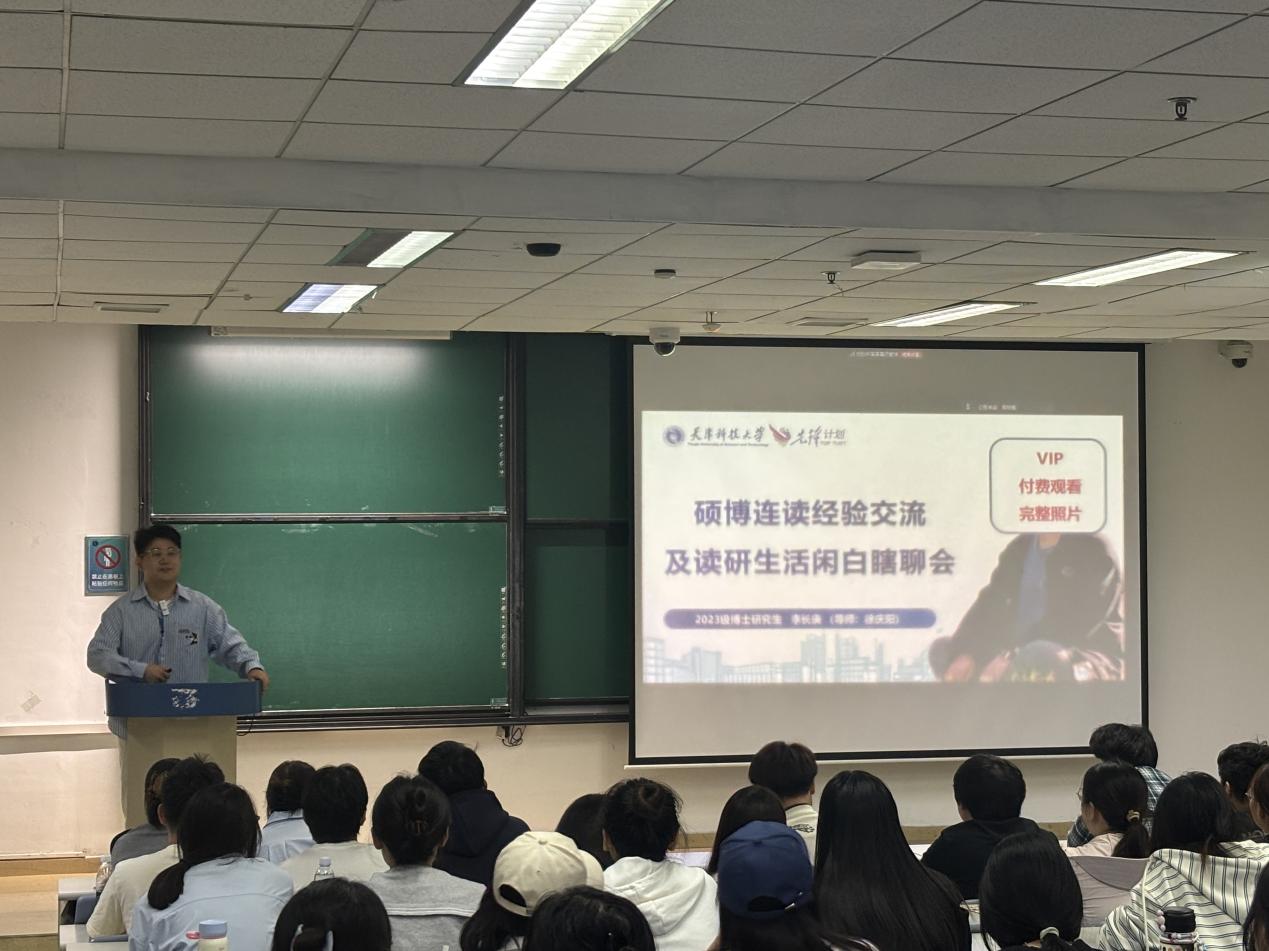 随后,2025级轻工技术与工程博士芦万伯从学术研究规划、科研方法积累、转博申请准备等方面进行了细致分享。他鼓励学弟学妹们尽早明确学术目标,主动与导师和同门交流,在科研实践中不断提升创新能力与学术素养,为未来学术深造奠定基础。