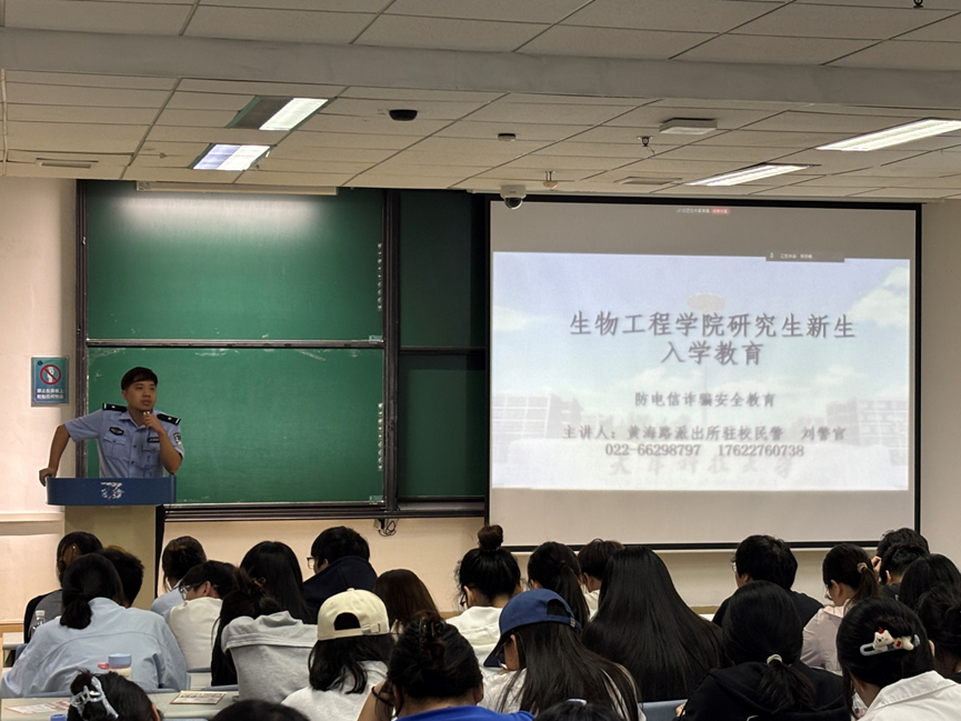 黄海路派出所驻校民警刘耕任为同学们带来防电信诈骗安全教育讲座。刘警官结合校园实际案例,从冒充公检法人员诈骗、刷单返利诈骗、虚假投资理财诈骗等十个维度展开讲解,提醒同学们提高安全警惕性,增强自我保护意识,为研究生阶段的学习生活构筑坚实的安全屏障。