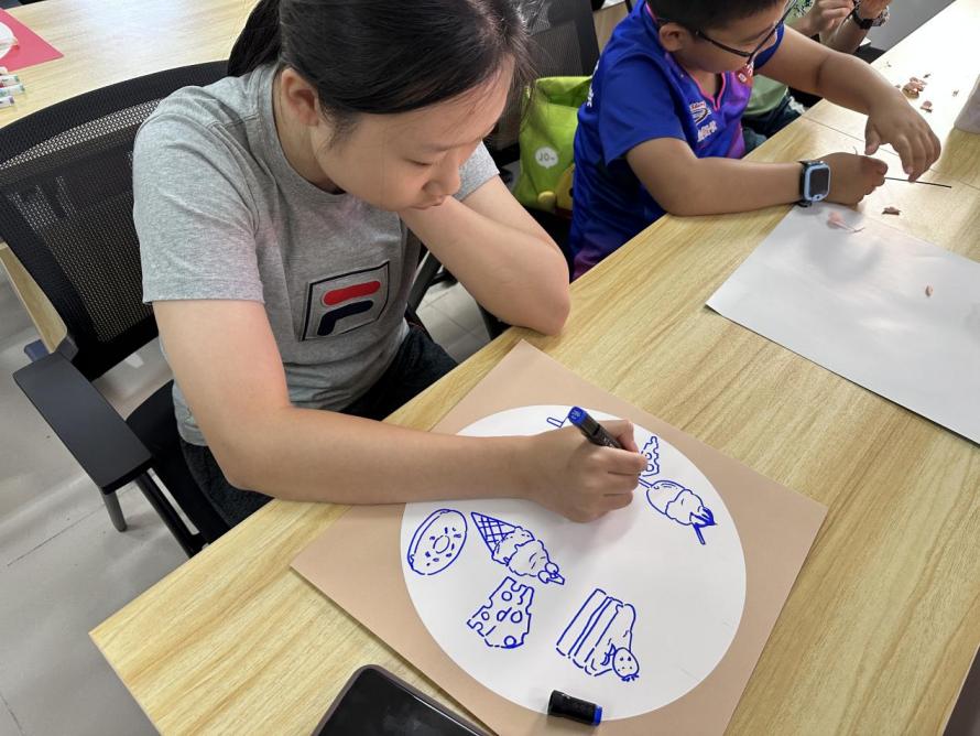 活动现场气氛热烈,孩子们发挥想象力,用五彩黏土和画笔制作了“西瓜”、“酸奶杯”、“奶酪块”等手工作品,并书写润肺小贴士,让节气饮食文化得以生动传承。